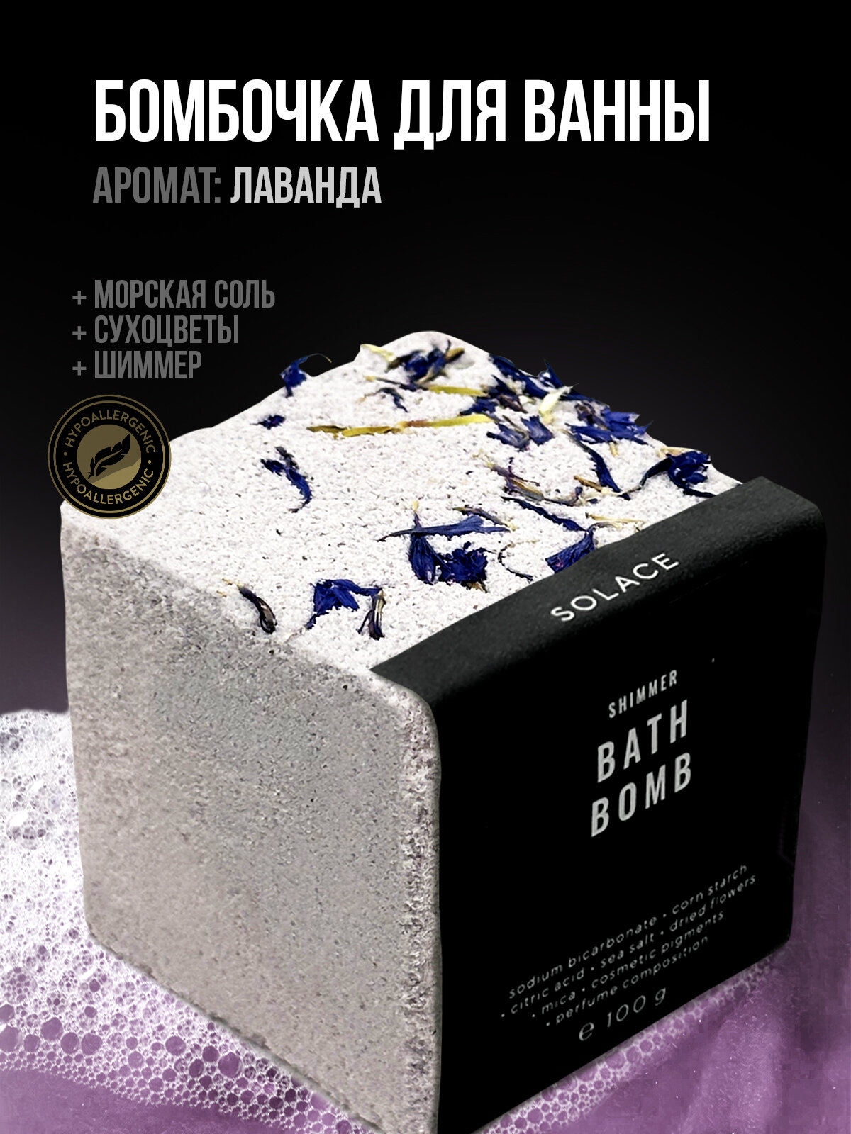 Бомбочка для ванны Solace с ароматом Лаванда ручной работы с морской солью, шиммером и сухоцветами (сиреневый): сравнение цен, характеристики, фото, актуальное наличие и цены.