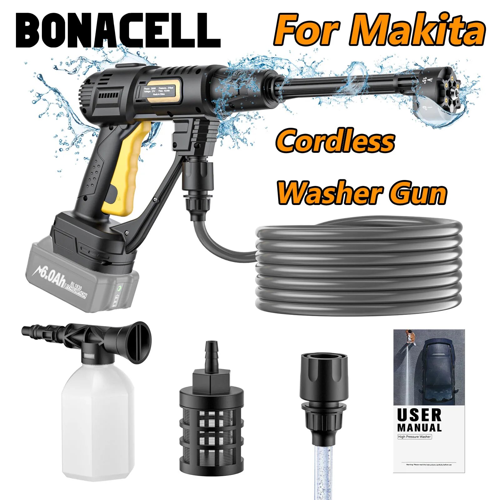 Купить Bonacell Новый пистолет для мойки автомобилей высокого давления Беспроводная автомойка Регулируемая длинная водопроводная труба для аккумулятора Makita 18 В, Washer Gun Cordless с доставкой по всей России.