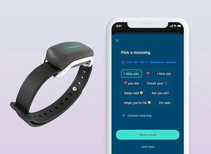 Комплект из двух браслетов Черного цвета Bond Touch - это парные браслеты, которые помогают любящим людям оставаться на связи. Когда вы коснётесь браслета, ваш партнёр почувствует вибрацию и увидит свечение - таким образом он поймёт, что вы думаете о нём. 2 черных браслета в комплекте. Bond Touch — это пара браслетов, предназначенных для пар, находящихся в отношениях на расстоянии, которые помогают им преодолеть расстояние. Каждый раз, когда вы касаетесь поверхности браслета, браслет вашего партнера загорается и вибрирует, имитируя рисунок вашего прикосновения, давая этому человеку понять, что вы думаете о нем, независимо от расстояния, достаточно будет того, чтобы ваш смартфон был связан с браслетом и подключен к сети интернет. Синхронизируйтесь со воей парой, загружайте приложение Bond Touch, настраивайте свои профили и оставайтесь на связи с помощью касаний и чата. Наслаждайтесь временем автономной работы до 3-4 дней и оставайтесь на связи весь день и ночь.
