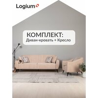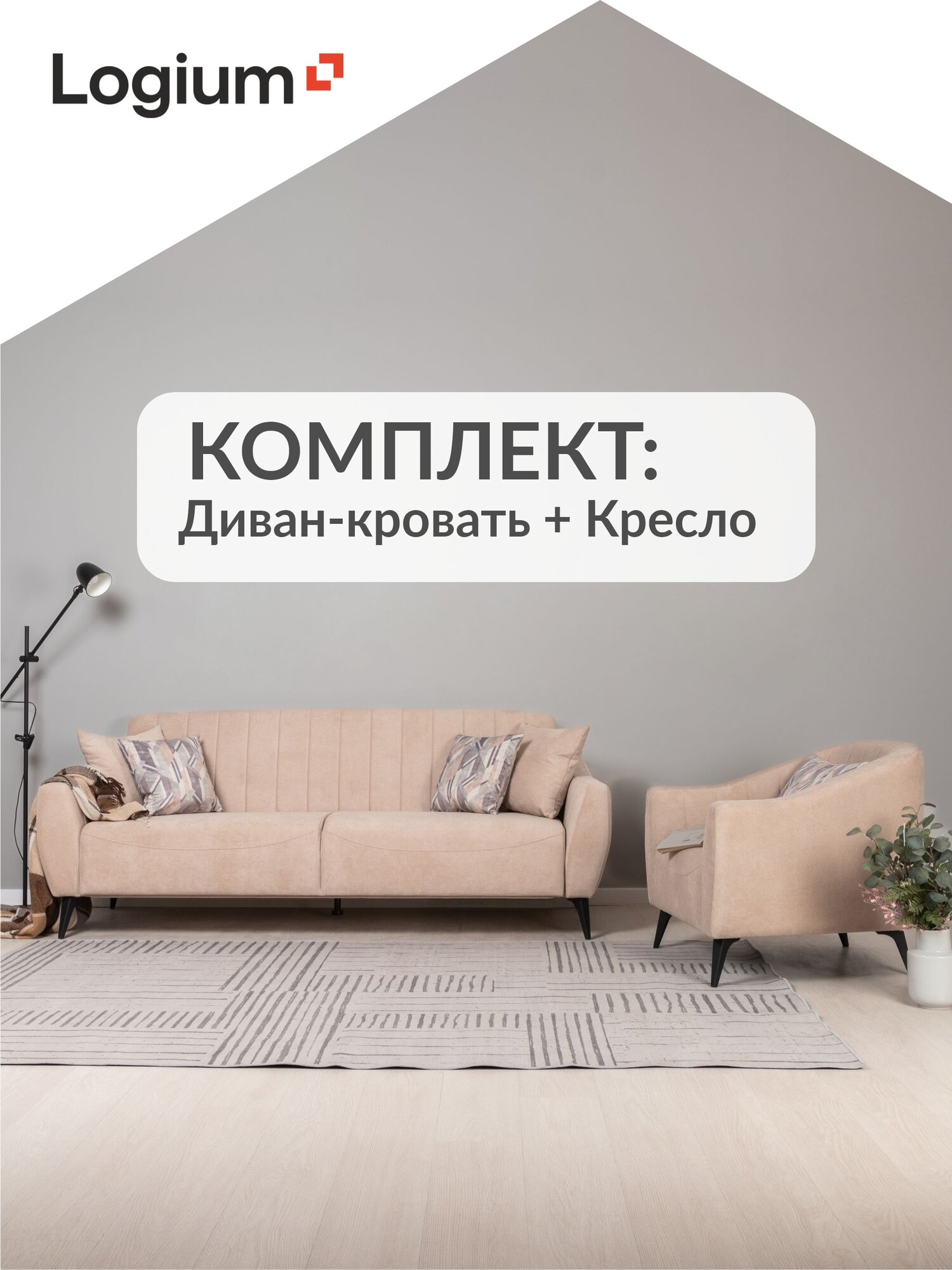 Купить Боне комплект мягкой мебели: диван кровать+ кресло, Велюр Happy 130 (кремовый), Оригами олив три с доставкой по всей России.