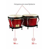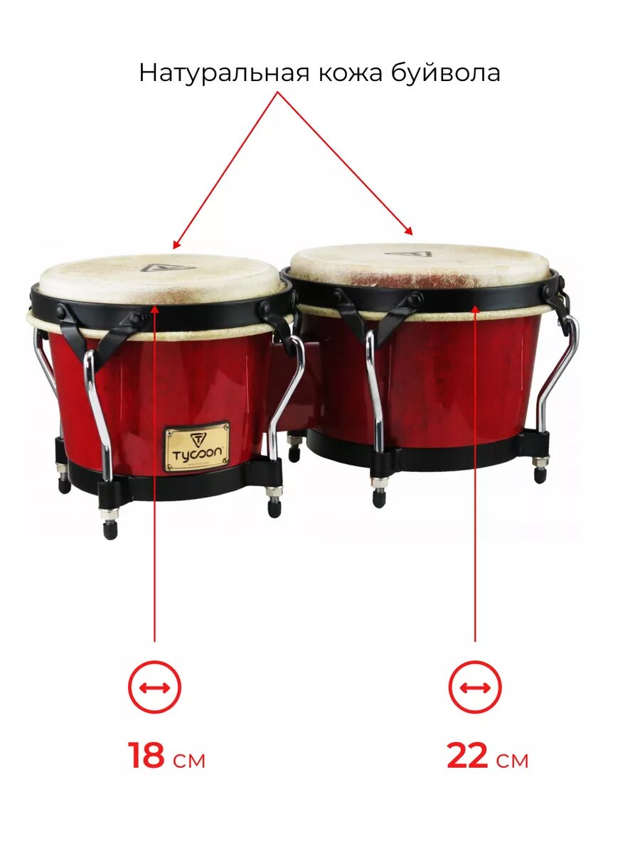TYCOON STB-B R - Бонго размера 7" x 8.5" изготовлены из сиамского дуба и имеют натуральную мембрану из кожи буйвола, цвет вишнево-красный , бонго оснащены стальной фурнитурой и имеют специальные нескользящие ножки с резиновыми накладками.