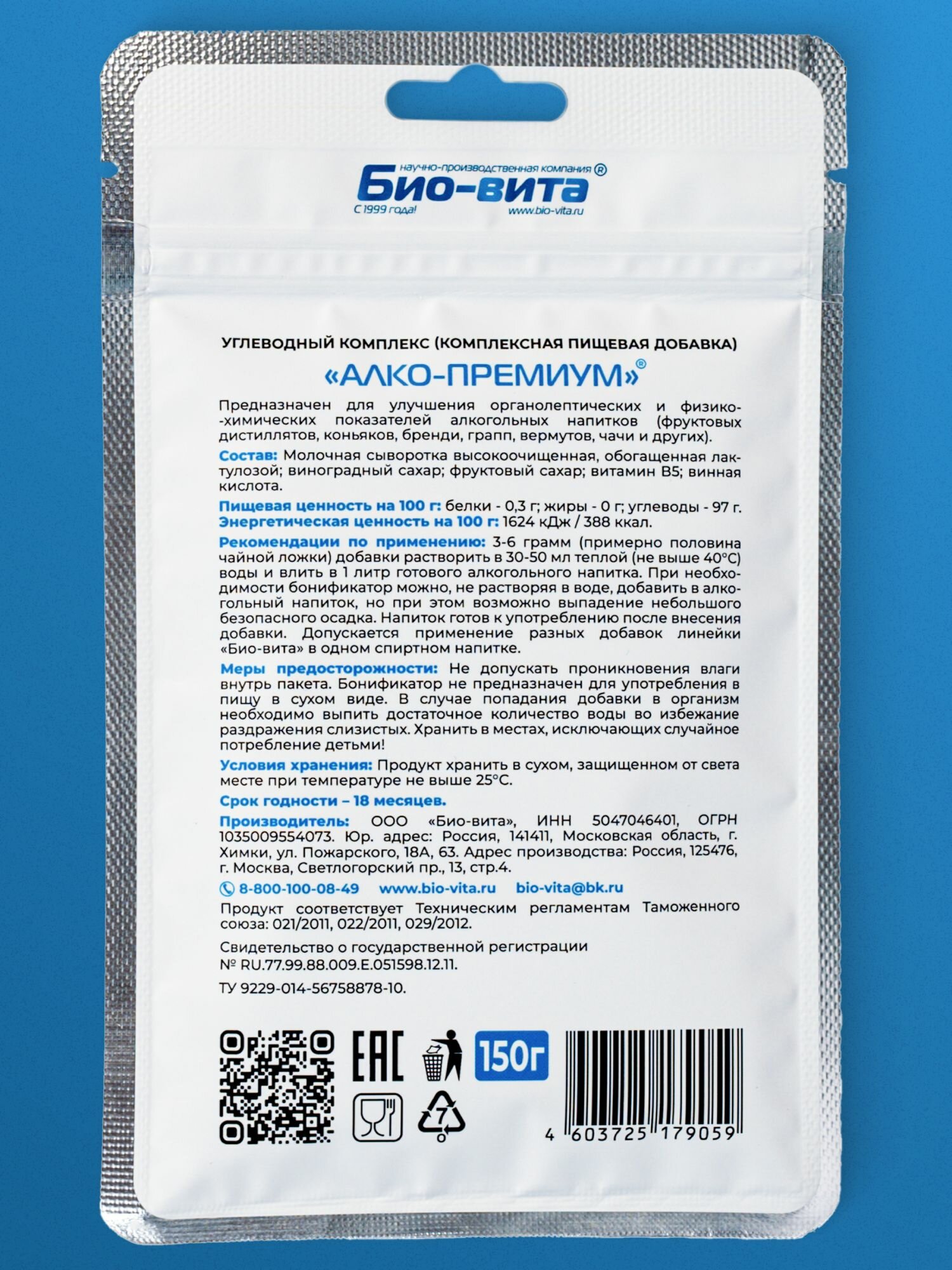 Бонификатор «Алко-Премиум» – это профессиональное решение для тех, кто ценит чистый вкус и заботится о качестве своего напитка. Более 25 лет технология Био-Вита® используется на 300+ предприятиях по всему миру, а напитки с этими добавками регулярно получают награды на международных конкурсах.