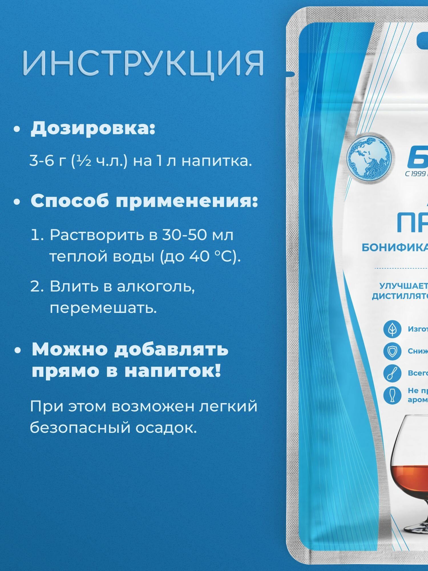 Примечание: допустимо добавление бонификатора прямо в алкоголь, но возможно образование легкого осадка, который не влияет на качество.