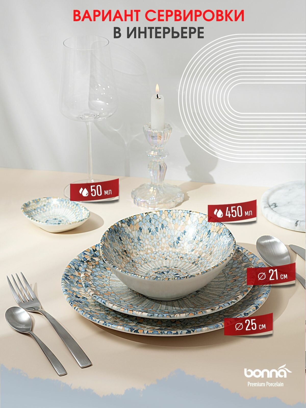 Каждая коллекция посуды, как и серия Mosaic, отличается оригинальным дизайном, благодаря чему может стать изюминкой для любого интерьера и праздничного стола. На данный момент Bonna является одним из наиболее популярных брендов в ресторанах и отелях по всему миру.