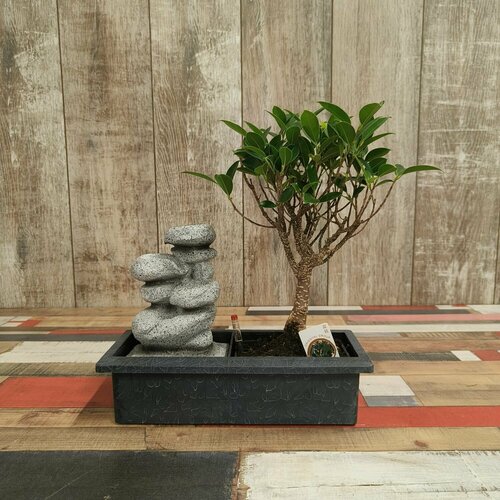 В комплекте с бонсай Фикус идет водопад "камни", который создает дополнительный эффект движения и динамики в вашем интерьере.