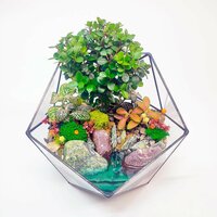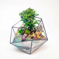Бонсай Мирсина Африканская в композиции с Фиттониями и натуральным мхом во флорариуме Икосаэдр – кусочек живой природы у вас дома.