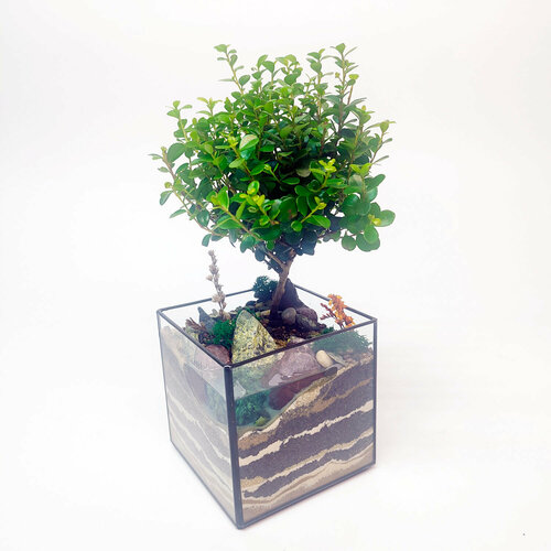 Бонсай Мирсина Африканская с озером во флорариуме Кубик – кусочек живой природы у вас дома.