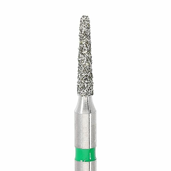 Бор имеет конусообразную форму и желобообразный уступ. Это позволяет ему легко проникать в труднодоступные места и обеспечивает высокую точность работы.
