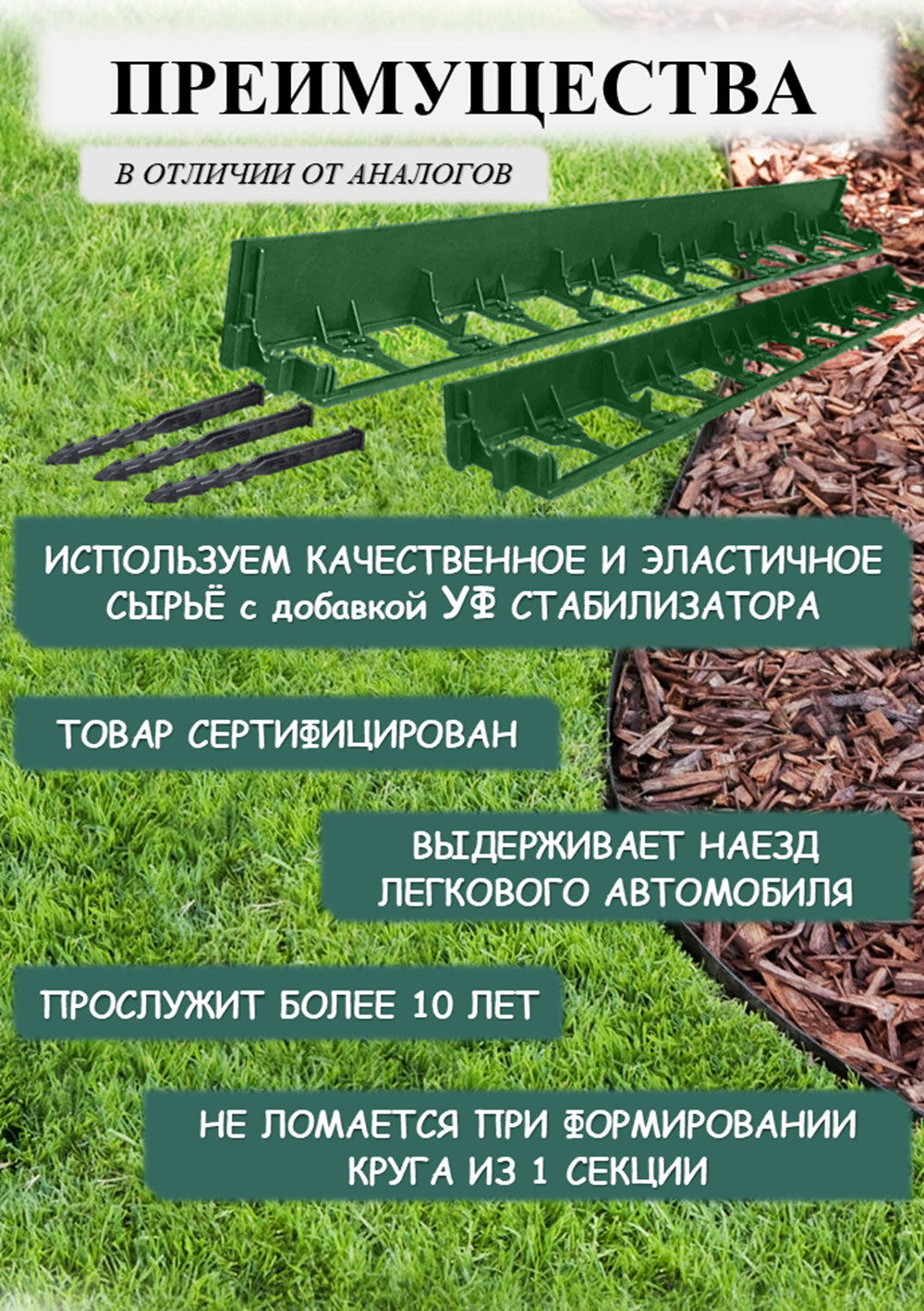 Бордюр садовый пластиковый ADVAPLAST высота 78 мм, 8 метров и 30 колышков, цвет зелёный.: сравнение цен, характеристики, фото, актуальное наличие и цены.
