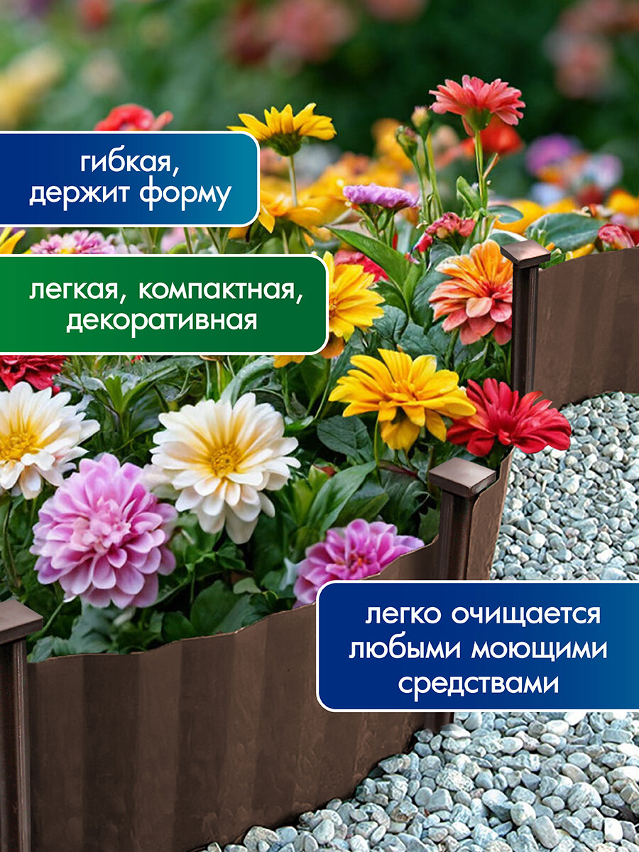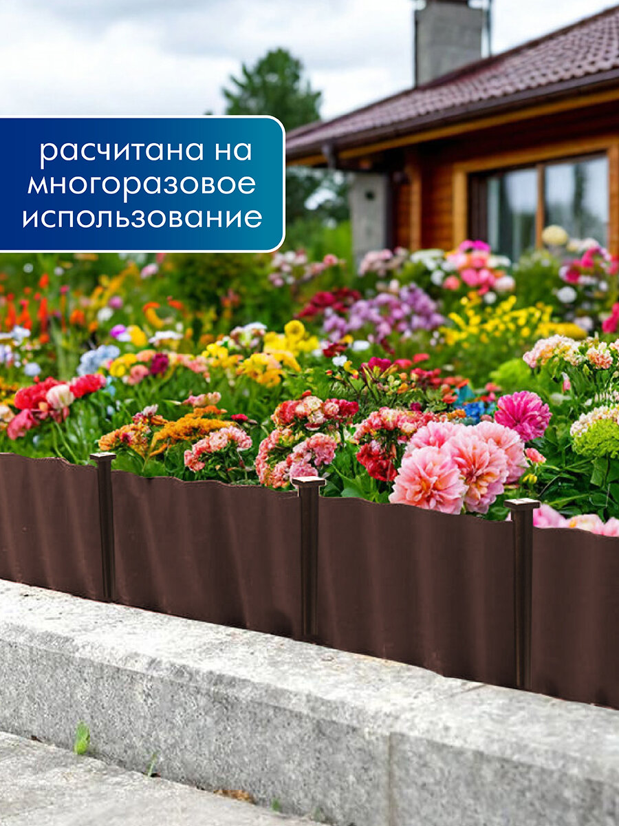 Эта бордюрная лента подходит для создания стильных ограждений вокруг цветников и грядок, а также для зонирования пространства на дачном участке. Легкость в установке и уходе делают её идеальным выбором для любителей садоводства и ландшафтного дизайна. За счет своей прочности и устойчивости к внешним воздействиям, бордюр не только выполняет практическую функцию, но и добавляет эстетическую ценность вашему саду.