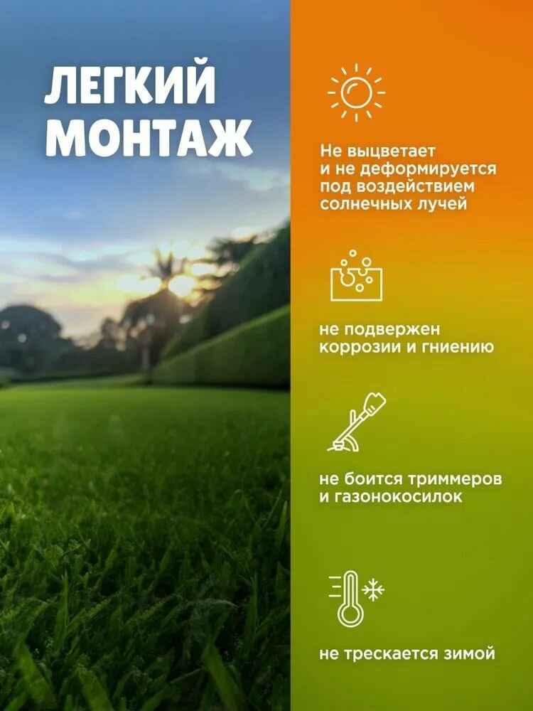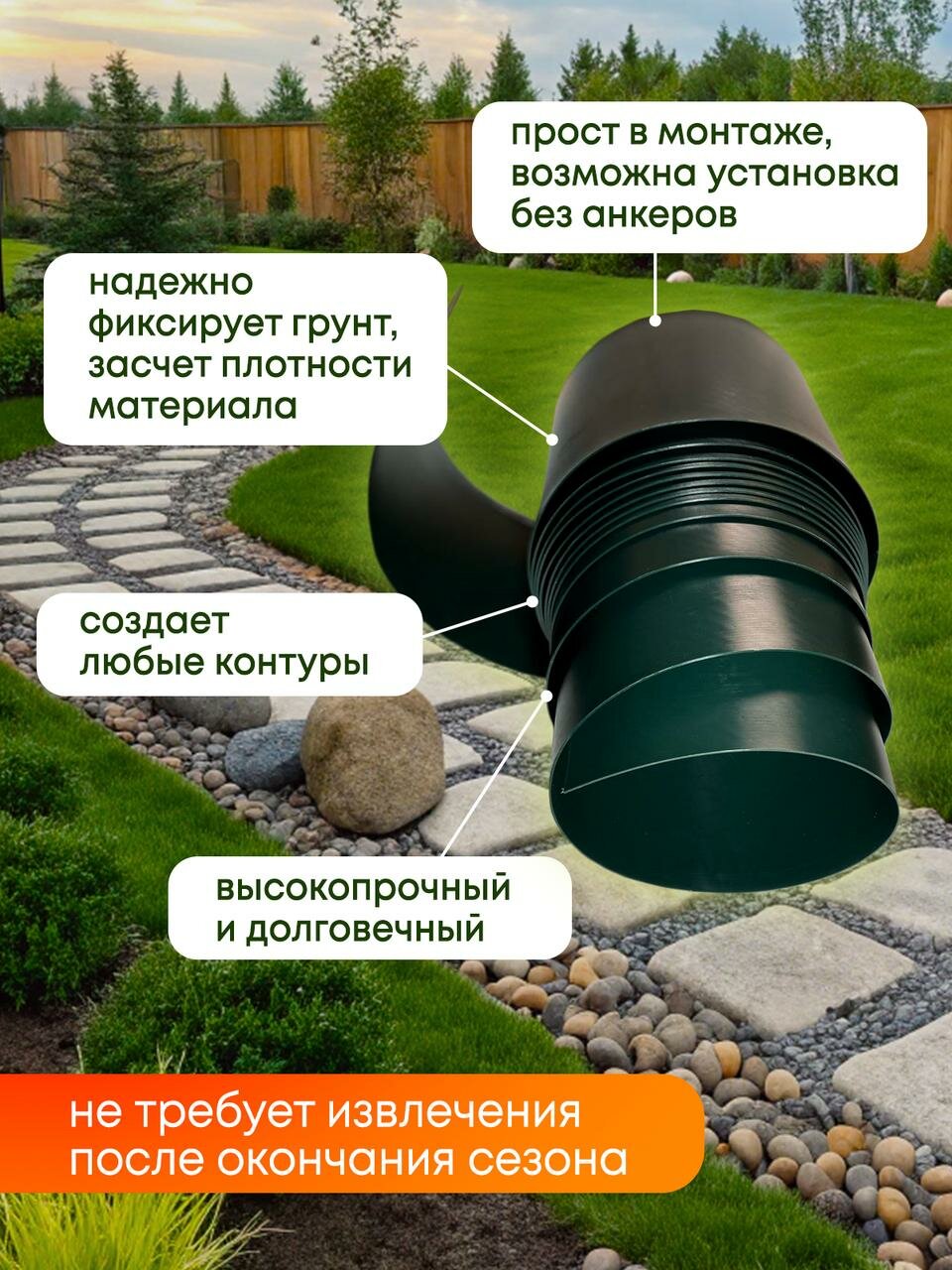- Удобство установки — Лента легко укладывается и фиксируется в земле, не требуя специальных инструментов. Вы сможете быстро и эффективно организовать пространство для растений.