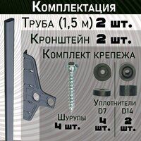 В комплект снегозадержателя входят две трубы, два кронштейна, комплект крепежа, инструкция по монтажу и фирменный скотч на концах упаковки трубы. Вес снегозадержателя составляет 2400 г.