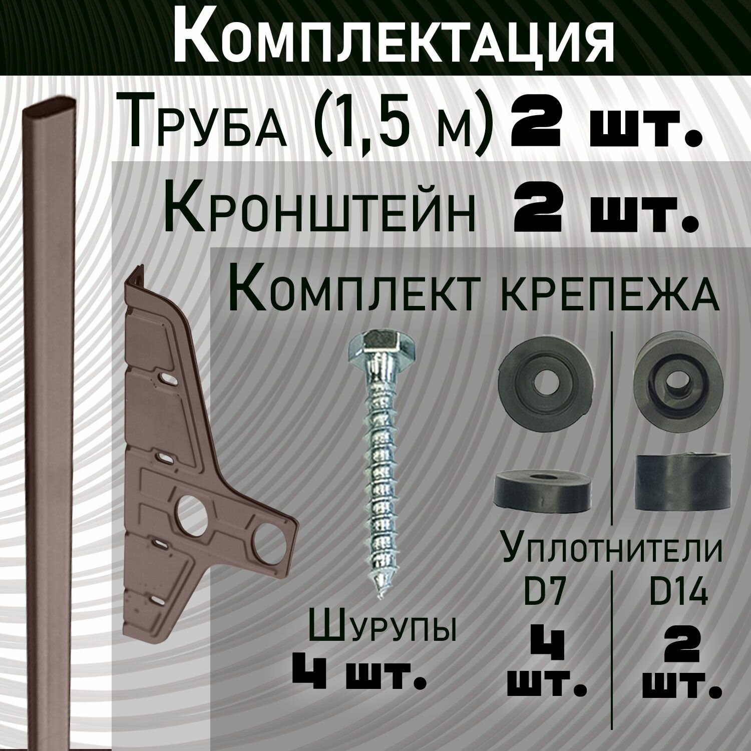Снегозадержатель состоит из двух овальных труб длиной 1,5 метра каждая, которые крепятся к кровле с помощью специальных кронштейнов. Кронштейны трапециевидные, имеют 8 ребер жесткости и обеспечивают надежное крепление снегозадержателя. В комплект снегозадержателя входят две трубы, два кронштейна, комплект крепежа, инструкция по монтажу и фирменный скотч на концах упаковки трубы.