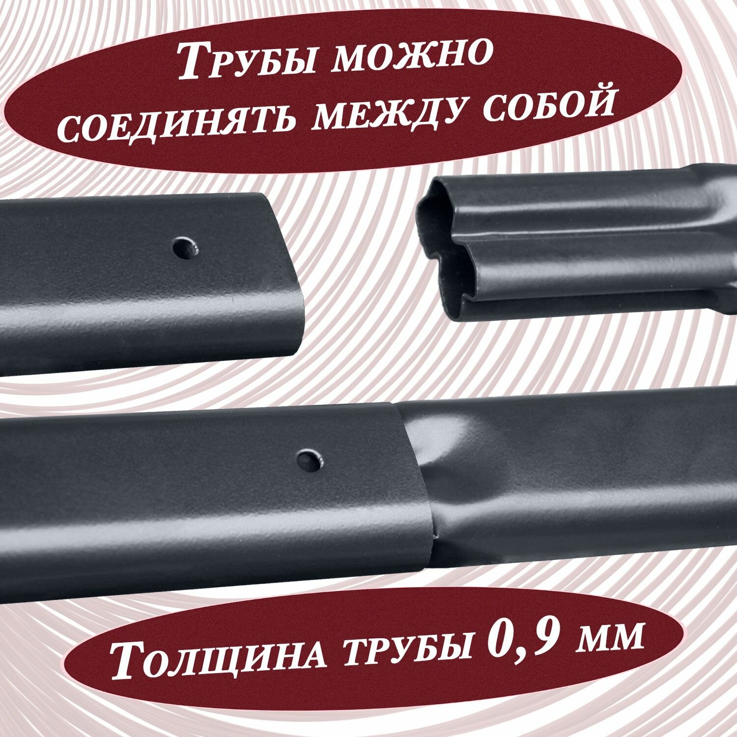 Трубчатый снегозадержатель состоит из двух овальных труб длиной 1,5 метра каждая, которые крепятся к кровле с помощью специальных кронштейнов. Кронштейны трапециевидные, имеют высоту до низа нижней трубы 45 мм и толщину 1,2 мм.