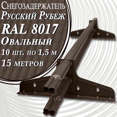 10 штук по 1,5 м снегозадержателей трубчатых овальных Premium 20х40 (15 метров / 20 кронштейнов) RAL 8017 для кровли из металлочерепицы, профнастила и гибкой черепицы шоколадно-коричневый