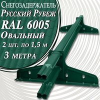 Borge » Русский рубеж» 3 метра (2 шт. по 1,5 м) RAL 6005 для гибкой и металлочерепицы, профнастила ( зеленый мох )снегозадержатель трубчатый овальный для кровли