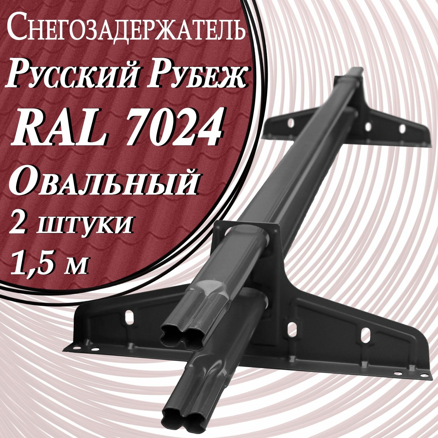 Снегозадержатели 2 штуки по 1 метру на крышу трубчатые овальные 40х20 2 метра 4 кронштейна RAL 7024 графитовый серый для кровли из металлочерепицы, профнастила и гибкой черепицы