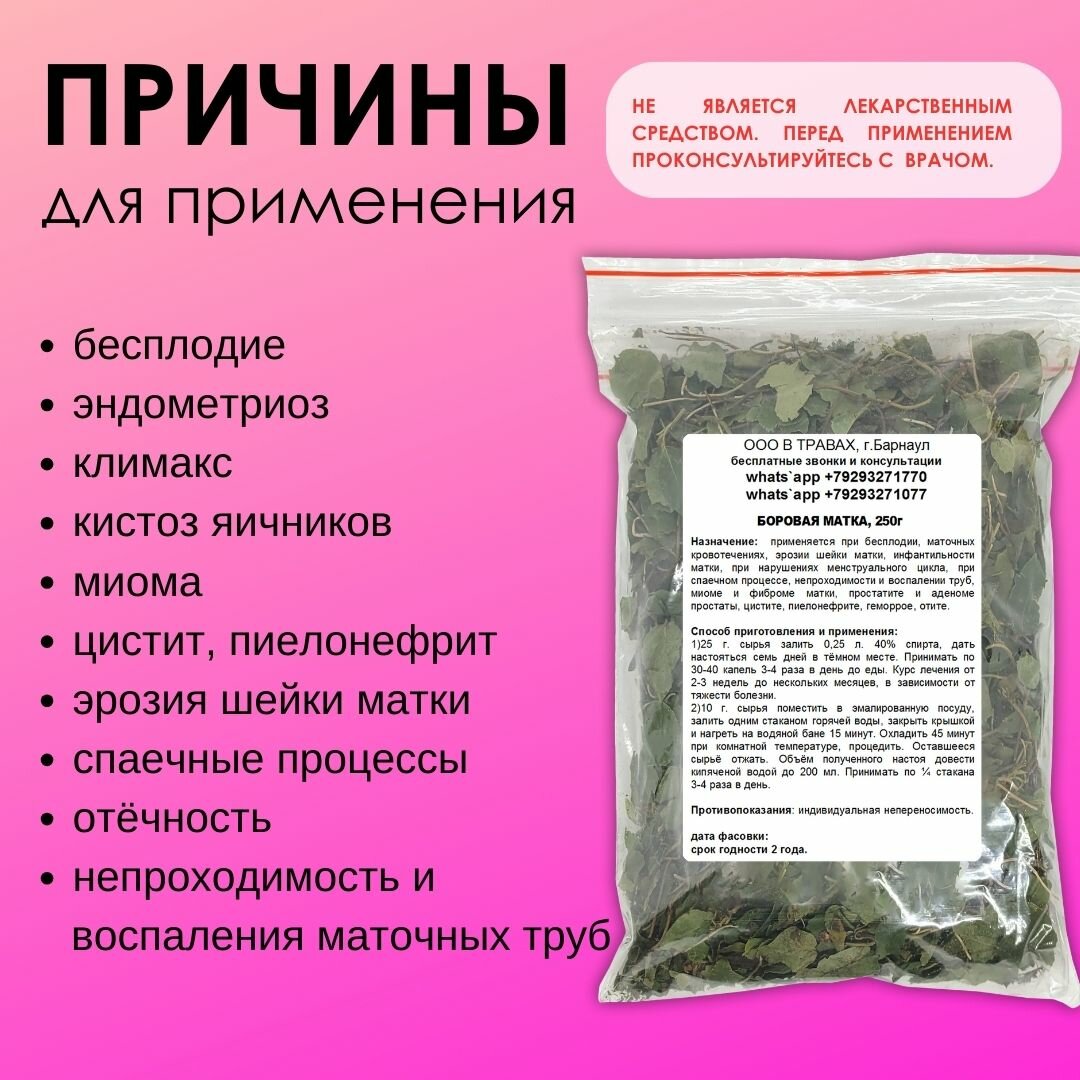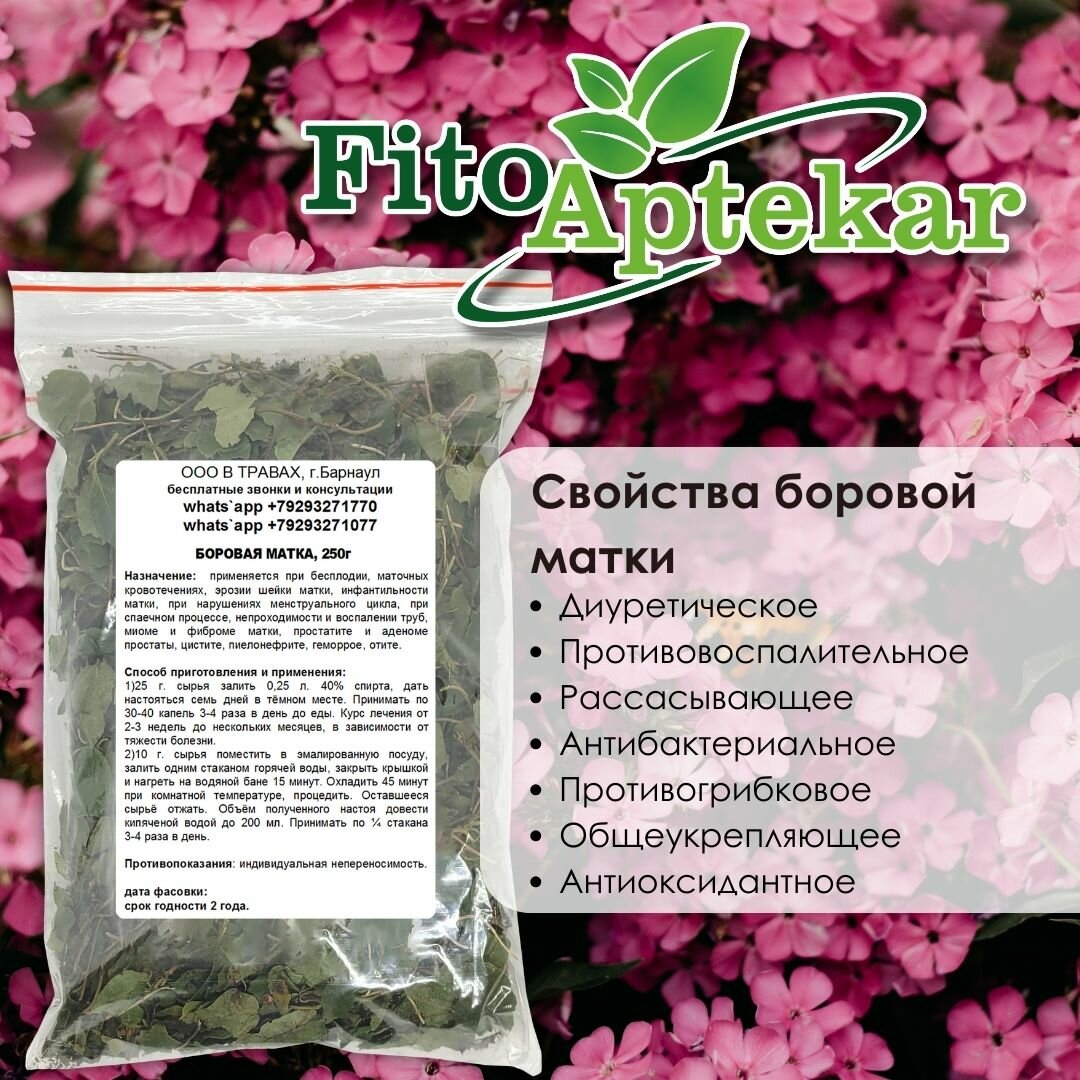 В народной медицине боровая матка считается травой от 100 недугов, и это не случайно. Ее часто используют при комплексном лечении различных заболеваний, включая женские заболевания, расстройства центральной нервной системы, заболевания желудочно-кишечного тракта и мочеполовой системы.