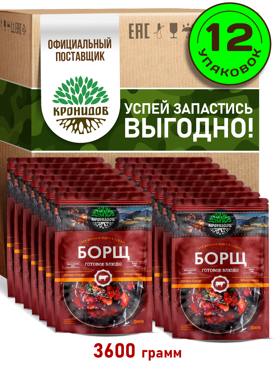 Купить Готовое блюдо Кронидов Борщ Готовая еда/ Консервы натуральные Набор 12 шт. по 300 г с доставкой по всей России.