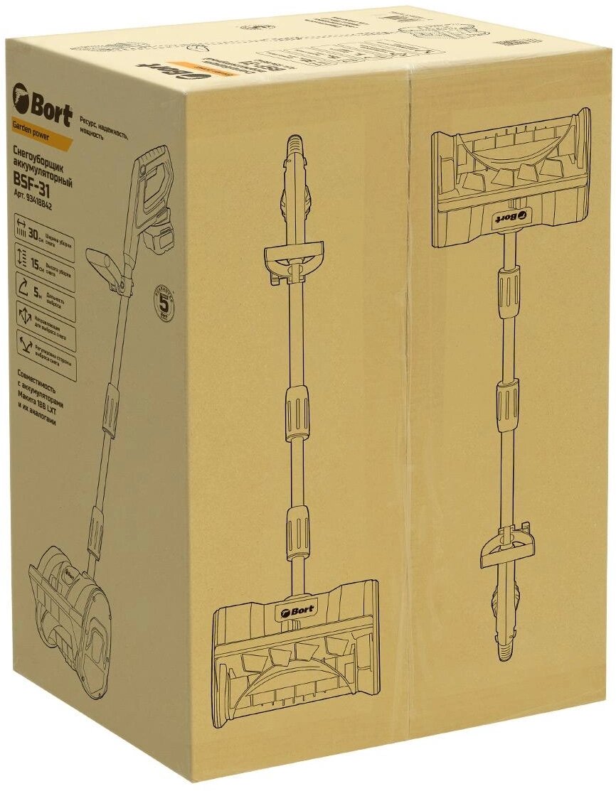 Bort Снегоуборщик аккумуляторный Bort BSF-31 (АКБ 18V Li-Ion, Ширина захвата 30 см, Высота захвата 15 см, Дальность выброса 0,5 м Вес 4 кг, 1х 4Ач АКБ и ЗУ): сравнение цен, характеристики, фото, актуальное наличие и цены.