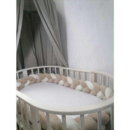 Удобный и стильный бортик в виде косички, верх изготовлен из мягкого хлопкового велюра, наполнитель - холлофайбер, подходит для новорожденных, не вызывает аллергию. Длина бортика 330 см, подойдет на весь периметр стандартной прямоугольной кроватки 60/120 и в овальную кроватку 125/65см. Также подходит для подростковой кровати 160/80см, закрывает все стенки, кроме проёма для выхода. Защитит малыша от ударов и сквозняков, отлично впишется в любой интерьер. Косичка проста в уходе, можно стирать в машинке. В комплект входят ленты для фиксации бортика к кроватке. Упакован в сумку с ручками, для удобства транспортировки и хранения. Оттенок может незначительно отличаться от фото, в зависимости от настроек цветопередачи.