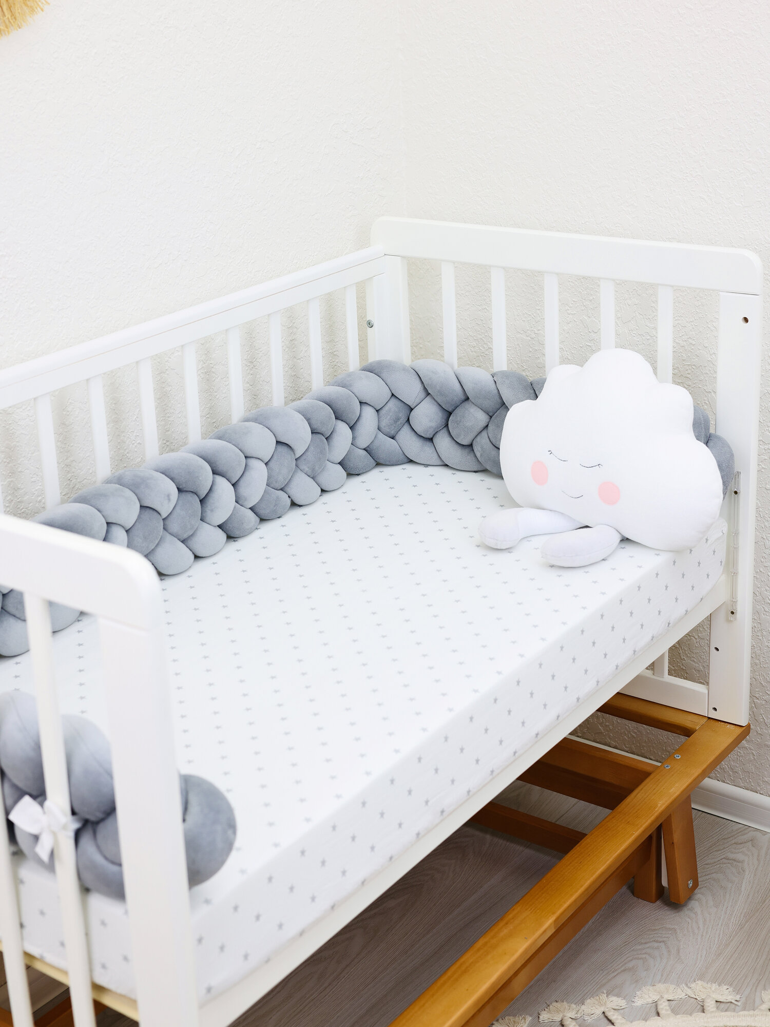 Благодаря своей мягкости бортик косичка подходит к детским кроваткам для новорожденных любых форм и размеров: