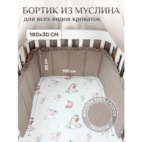 Бортик муслин 180х30 с рюшей для новорожденных, цвет — капучино: сравнение цен, характеристики, фото, актуальное наличие и цены.