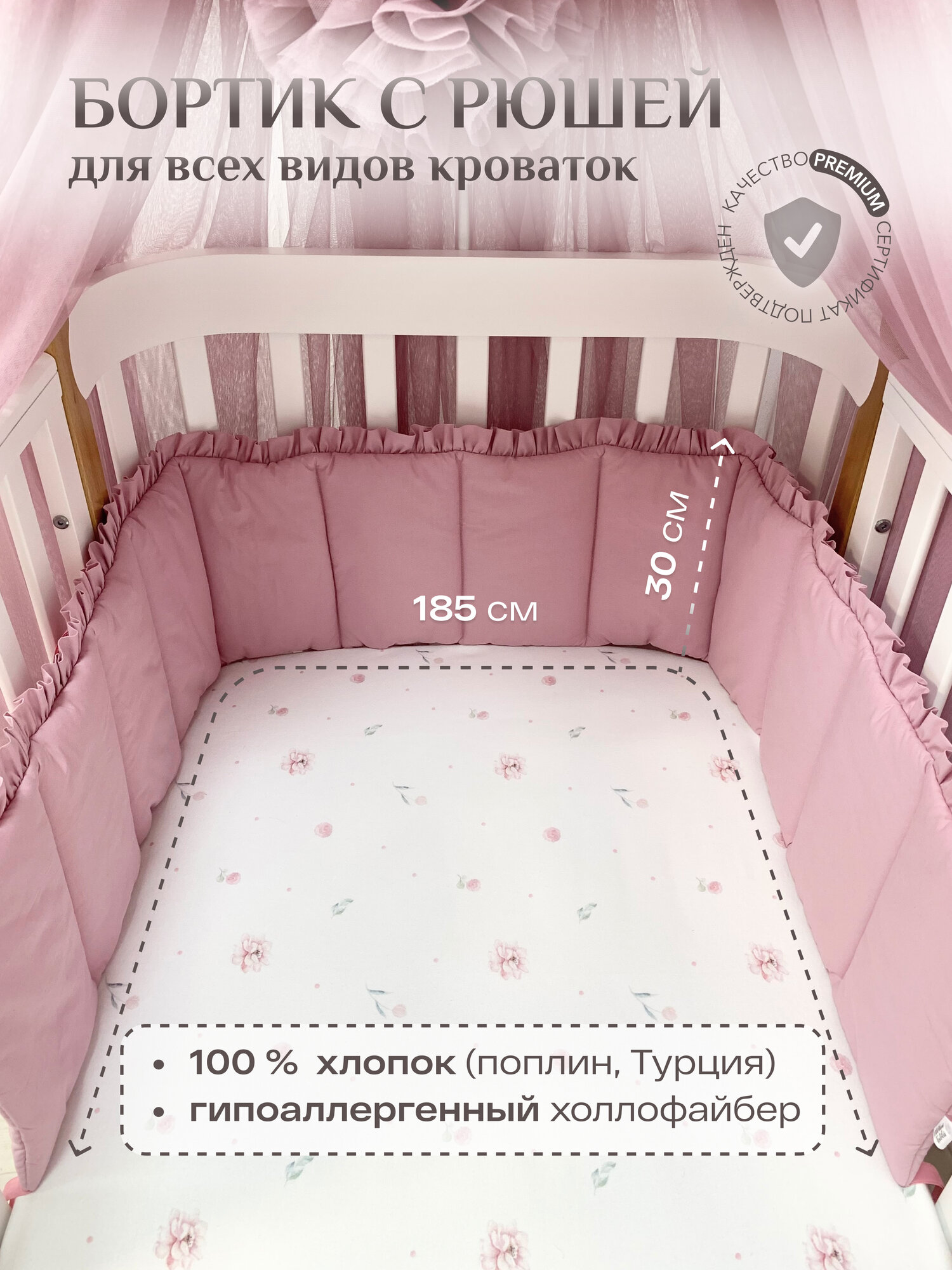 - Элегантный дизайн: Рюшечки по краям придают бортику нежный, стильный вид, который будет отлично смотреться в интерьере любой детской комнаты. Бортик не только выполняет практическую функцию, но и служит красивым элементом декора.
