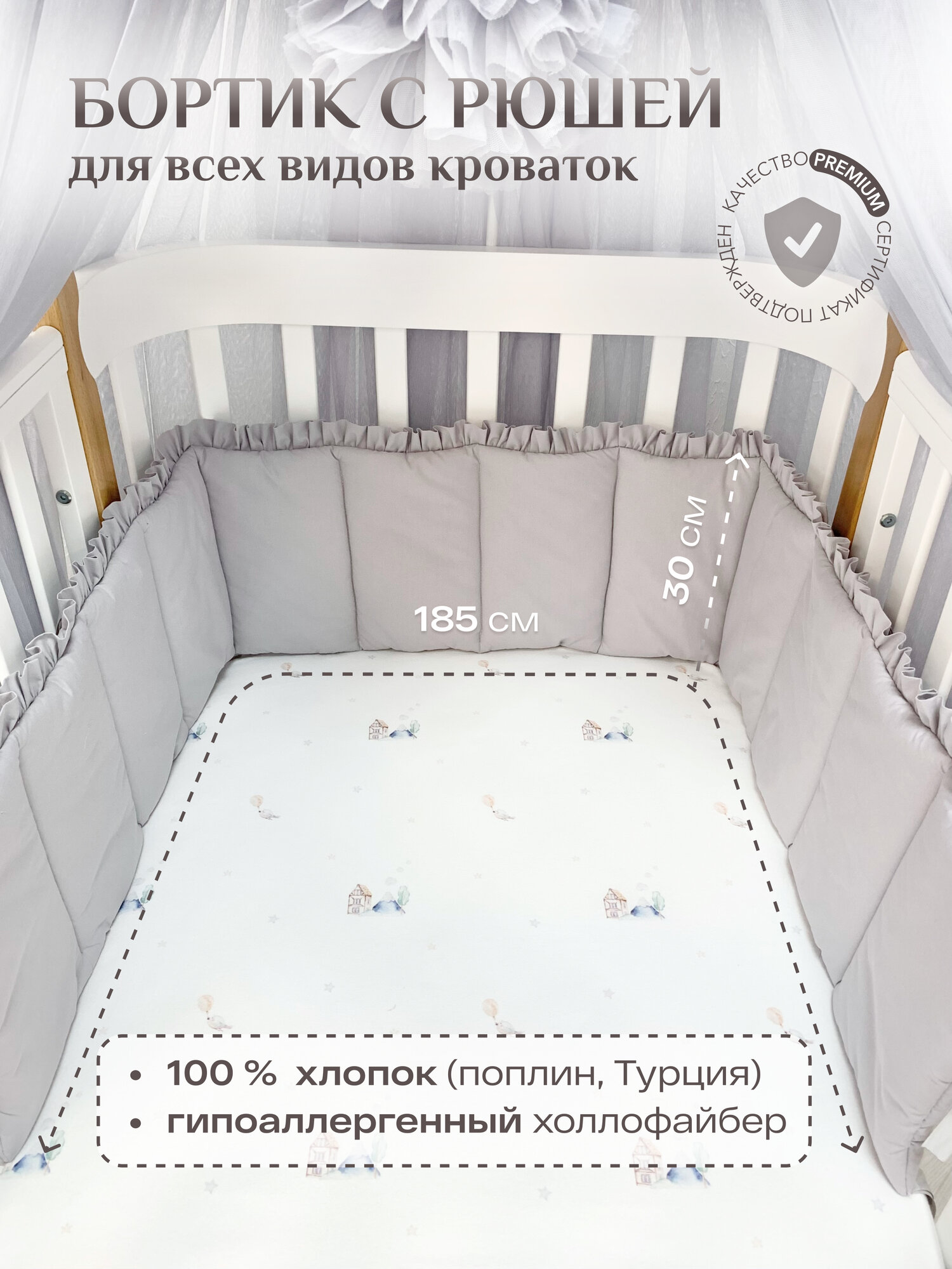 Купить Бортик с рюшей в кроватку для новорожденных, цвет — серый с доставкой по всей России. Бортик с рюшей в кроватку для новорожденных, цвет — серый: сравнение цен, характеристики, фото, актуальное наличие и цены.