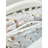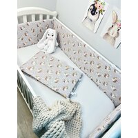 Плоские бортики со съемными чехлами - идеальное решение для ценителей пространства в детской кроватке. Качественные и красивые бортики для детской кроватки защитят Вашего малыша, а также придадут красивый вид. В состав комплекта входят 4 бортика. Они подойдут и мальчику, и девочке. Бортики тонкие (толщина - 2 см), так что что не занимают много места в кроватке и не съедают пространство. Наши бортики в кроватку для новорожденного сшиты из качественного хлопка и сертифицированного гипоаллергенного наполнителя – файбер хард. Имеют много прочных завязок, так что бортики будут крепко держаться на кроватки малыша. У бортиков съемные чехлы на молниях, что очень удобно при уходе, вы легко сможете снять их и постирать. Снять чехлы, стирать на деликатном режиме при средних оборота детским моющим средством без отбеливателя, при температуре не более 30 градусов.