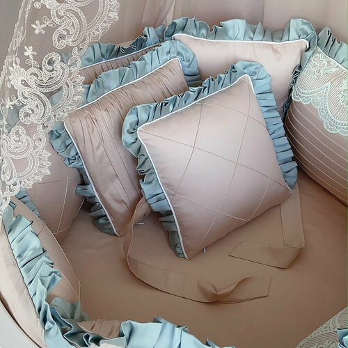 Купить Бортики в кроватку для новорожденных «Роскошь», в кроватку для новорожденных 120*60 см или в овальную 125*75 см, сатин и тенсель с доставкой по всей России.