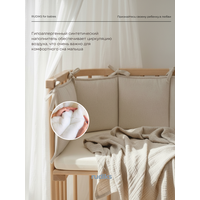 Бортики изготовлены из высококачественного смесового льна, которые обеспечивают циркуляцию воздуха и комфорт для ребенка. Экофайбер, используемый в качестве наполнителя, гипоаллергенен и безопасен для здоровья малыша.