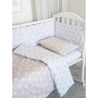 Бортики в кроватку плоские со съемными чехлами из сатина со стильным принтом горох. Чехлы бортиков съемные, на молнии. Комплект состоит из 4 бортиков, закроет весь периметр кроватки. Завязки надежно фиксируют бортик в кроватке малыша. Комплект бортиков в кроватку выполнен из сатина премиального качества, который прослужит долго при соблюдении правильного ухода. Мягкие бортики подходят на большинство моделей современных детских кроваток. Защитные бортики в кроватку отвечают самым высоким требованиям и безопасны для детей и новорожденных. Нежный, спокойный принт обеспечит спокойный и крепкий сон малыша. Бортики подходят на кроватки с решетчатыми и сплошными боковыми стенками. Детская кроватка с такими бортиками несомненно послужит украшением детской комнаты. Комплект в кроватку для новорожденного из 4 бортиков создаст уют в спальне и подойдет для любого интерьера. Наполнитель синтепон - экологически безопасный, гипоаллергенный и практичный материал. Комплект для новорожденных из 4 бортиков - это прекрасный подарок на рождение малыша и любое торжество. Стираются бортики в стиральной машинке на деликатном режиме при 30 градусах. Не отбеливать.