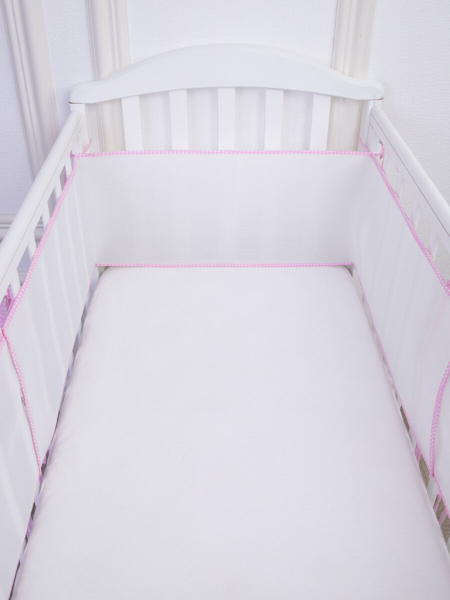 Купить Бортики в кроватку для новорожденных 31х180 -2 шт. сетка, дышащие. Универсальные. На круглую, овальную кроватку. розовый с доставкой по всей России.
