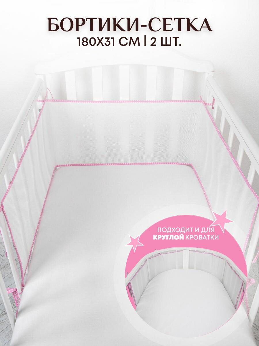 Бортики в кроватку для новорожденных 31х180 -2 шт. сетка, дышащие. Универсальные. На круглую, овальную кроватку. розовый: сравнение цен, характеристики, фото, актуальное наличие и цены.