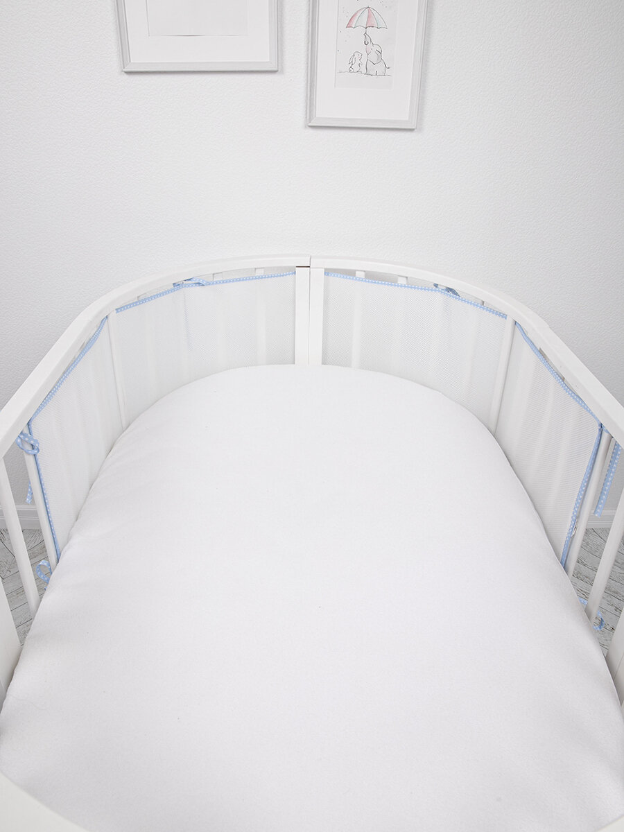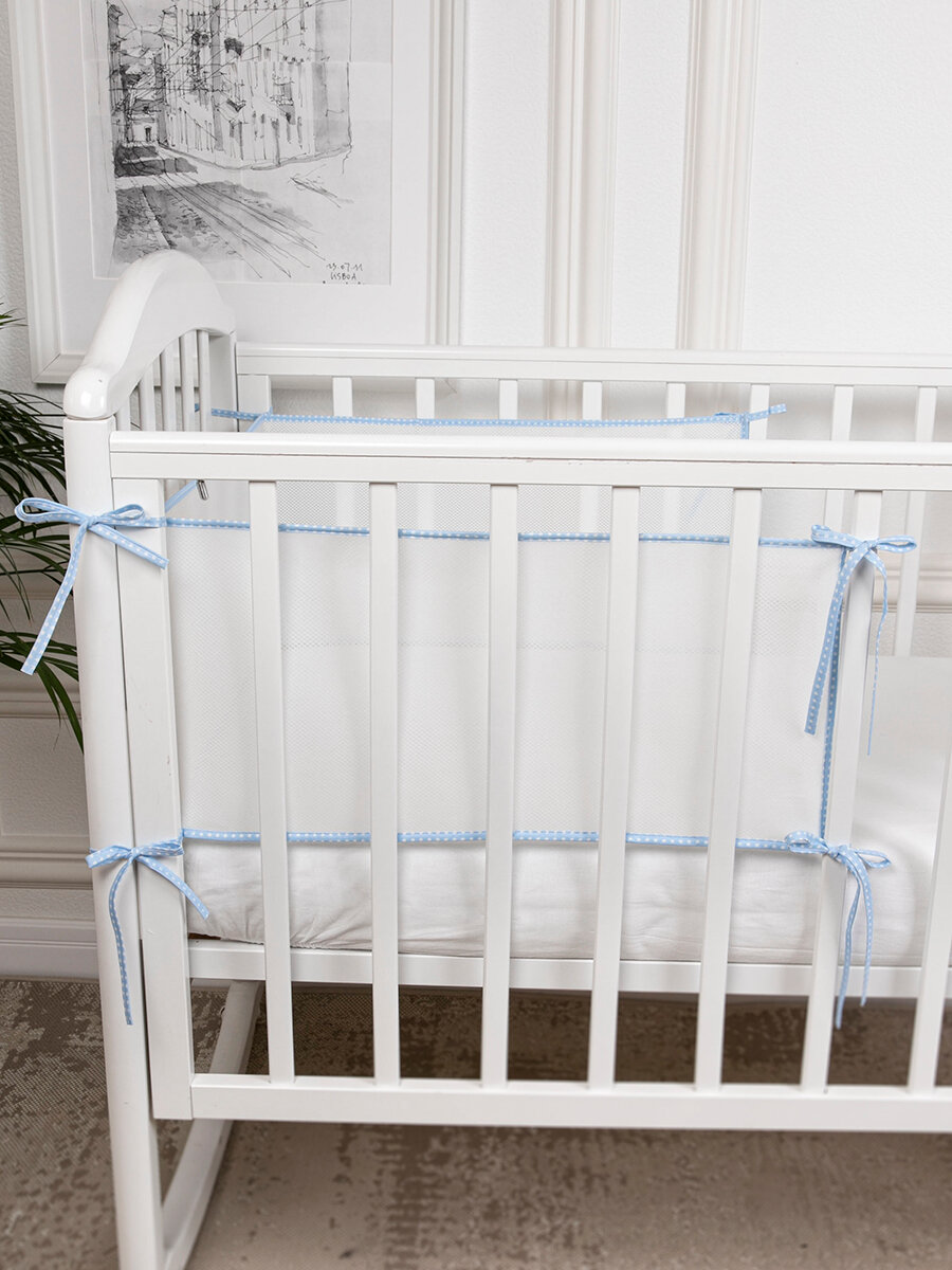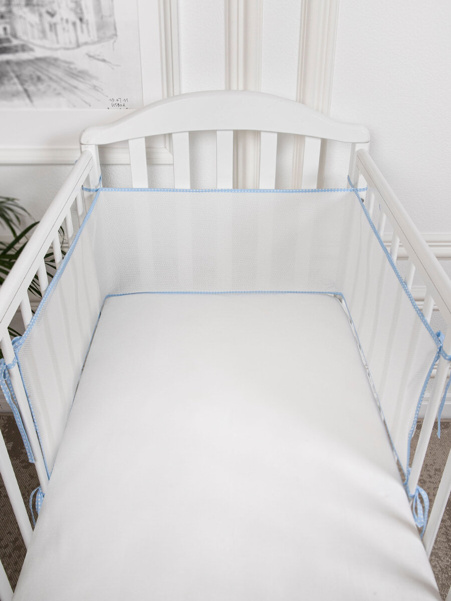 Бортики в кроватку для новорожденных 31х180 сетка, дышащие. Универсальные. На круглую, овальную кроватку. голубые: сравнение цен, характеристики, фото, актуальное наличие и цены.