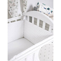 Комплект из плоских бортиков для детской кроватки – это комфорт и безопасность для вашего малыша в первые дни жизни. Мягкие бортики-барьеры закрывают весь периметр детской кроватки, защищают малыша от ударов и сквозняков, не позволяют провалиться ручкам или ножкам между прутьев кроватки. Защитные барьеры выполнены из 100% хлопка, наполнитель холофайбер. Принты для детского текстиля абсолютно безопасны. Плоский бортик не занимает место в кроватке, его легко стирать, он быстро сохнет. Комплект подойдет и девочке и мальчику. Бортики на кроватку для новорожденных - это полезный подарок на день рожденья для детей, выписку из роддома, в дом, на дачу. Внимание! Это обновленная модель - чехлы на молнии, съемные.