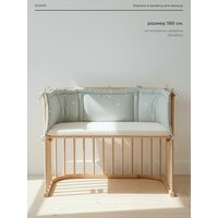 Бортики изготовлены из премиальных материалов: хлопок и смесовый лен. Экофайбер, используемый в качестве наполнителя, обеспечивает циркуляцию воздуха, что важно для здоровья ребенка.