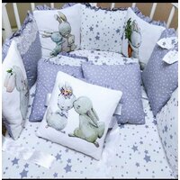 В комплекте 12 бортиков-подушек, украшенных фотопечатью на велюре. Бант на завязке.