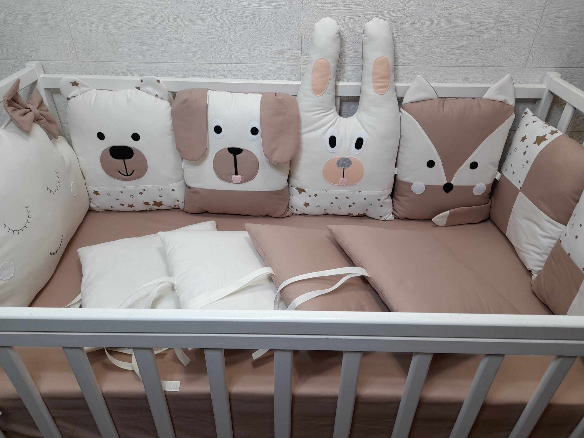 Бортики в кроватку для новорожденных «Солнышко моё», звери, 11 предметов .