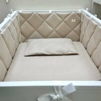 Купить Бортики в кроватку для новорождённых, пыльно бежевый, 100% хлопок, 60х30 см — 2 шт, 120х30 см — 2 шт, MamiBro с доставкой по всей России.
