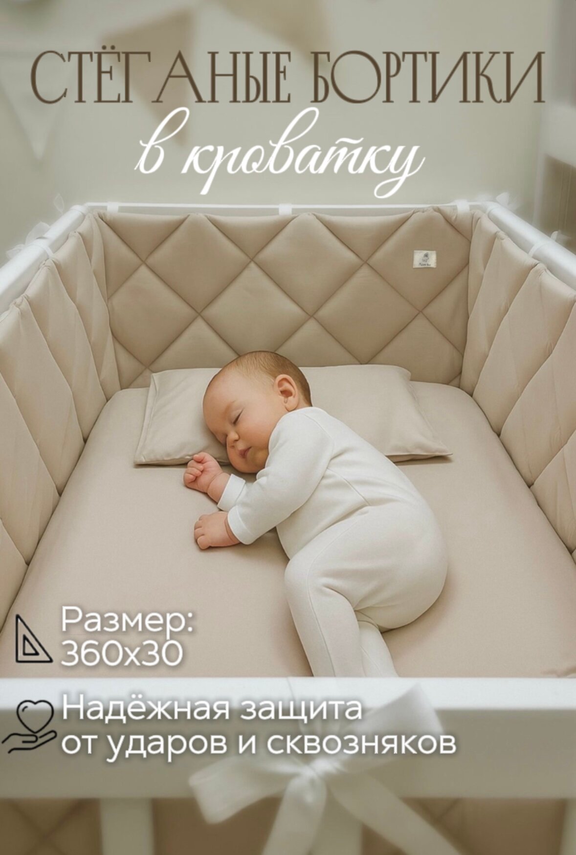 Бортики в кроватку для новорождённых, пыльно бежевый, 100% хлопок, 60х30 см — 2 шт, 120х30 см — 2 шт, MamiBro: сравнение цен, характеристики, фото, актуальное наличие и цены.