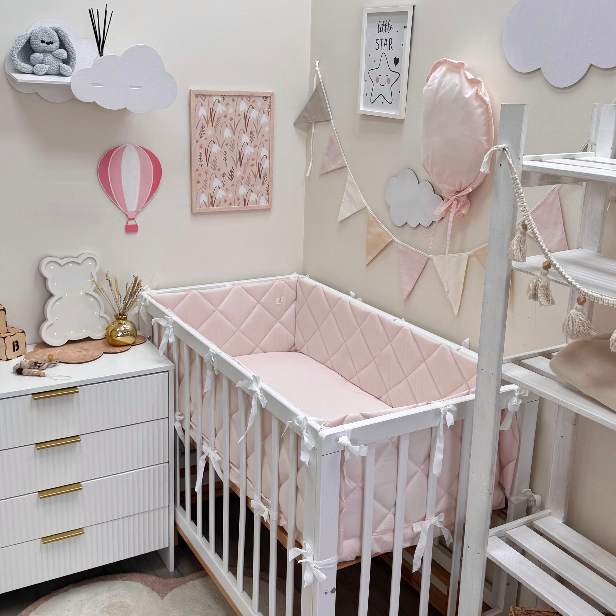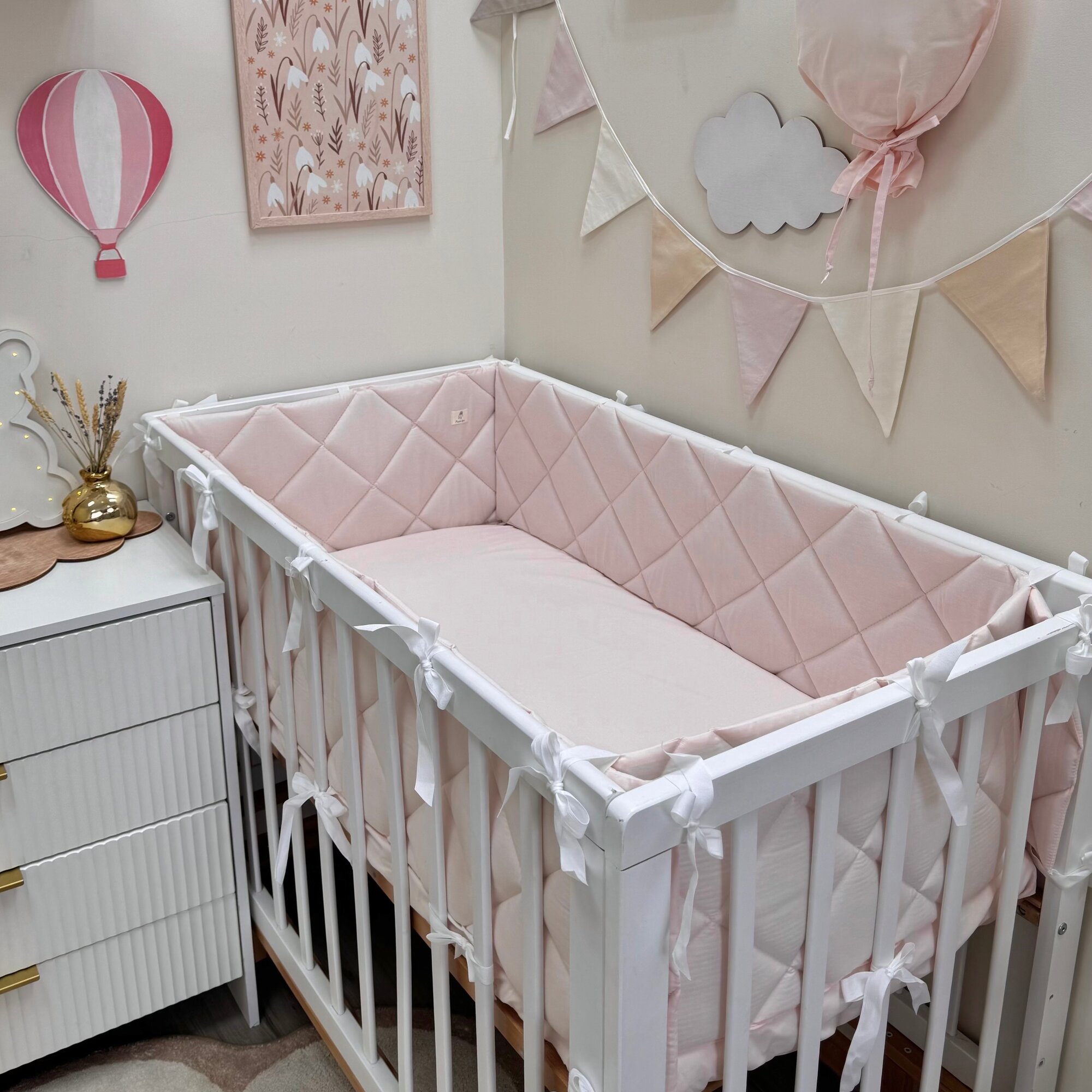 Бортики в кроватку для новорождённых, бледно розовый, 100% хлопок, 60х30 см — 2 шт, 120х30 см — 2 шт, MamiBro: сравнение цен, характеристики, фото, актуальное наличие и цены.
