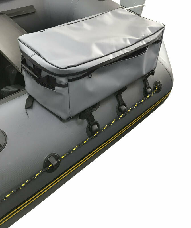 В сумку с креплением на баллон лодки ПВХ можно разместить различные вещи. Это очень практично, так как вещи не занимают места в кокпите. Также бортовая сумка защитит вещи от брызг, воды и дождя.