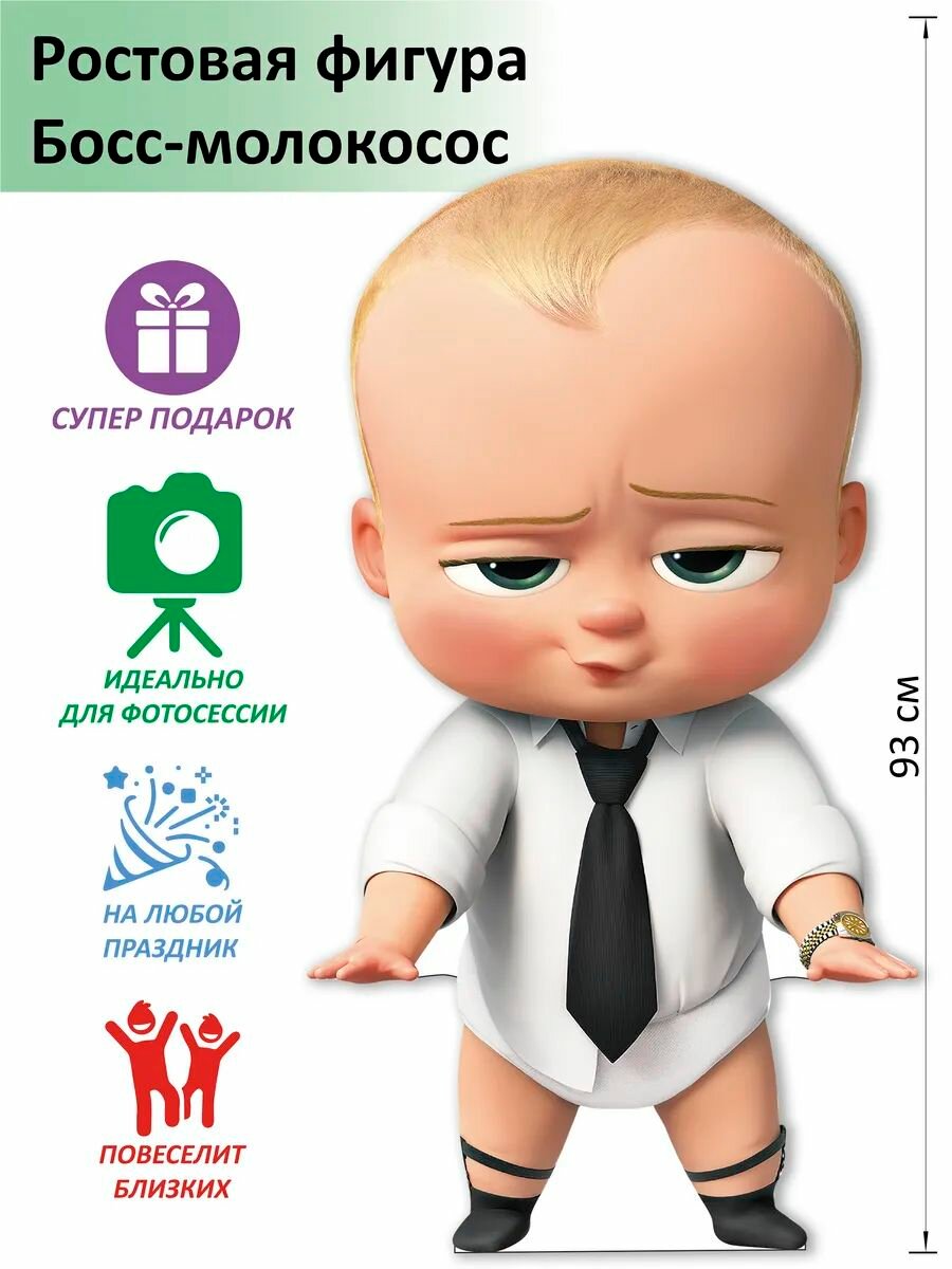 Ростовая фигура "Босс-молокосос" - это уникальное и оригинальное решение для создания неповторимой атмосферы праздника. Она выполнена в виде картонной фигуры высотой 93 см и шириной 40 см, что позволяет увидеть героя в полный рост.