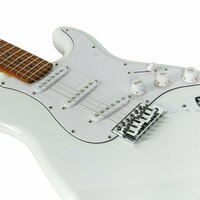 Bosstone SG-03 V.2 WH (2025) - ЭлектрогитараМодель SG-03 V.2 WH (2025) — это идеальный инструмент для музыкантов, стремящихся к качественному звучанию и удобству в игре. С шестью струнами и креплением грифа на болтах, эта гитара обеспечивает надежную стабильность и комфорт. Корпус из плоского плана и печеный клён в сочетании с накладкой из техновуда создают гармоничное звучание и отличную отзывчивость. Мензура 25,5" (648 мм) и радиус накладки грифа 14" (355 мм) обеспечивают легкость игры, а профиль грифа С-образной формы и его толщина на 1 и 12 ладах делают инструмент удобным для любых стилей игры. Оснащенная тремя синглами, эта модель предлагает широкий диапазон звуковых возможностей, а пятипозиционный переключатель позволяет легко переключаться между различными тембрами. Бридж Tremolo добавляет выразительности вашим музыкальным идеям, а хромированная фурнитура подчеркивает стильный белый цвет гитары. В комплекте идет чехол, что делает эту модель отличным выбором для путешествий и выступлений. Праворукая модификация подходит как для начинающих, так и для опытных музыкантов.