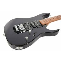 Bosstone SG-06 V.2 BK (2025) - ЭлектрогитараЭлектрогитара Bosstone серии SG-06 V.2 (2025) оснащена 6 струнами и выполнена из липы, что обеспечивает яркий и насыщенный тон. Гриф из печеного клена с накладкой из техновуда имеет 24 лада и "С"-образный профиль, что делает игру комфортной и быстрой. Мензура в 25,5 дюймов и радиус накладки 14" (355 мм) позволяют достигать отличной интонации и легкости в игре. Гитара оборудована двумя хамбакерами и синглом, а также пятипозиционным переключателем, что дает возможность создавать разнообразные звуковые оттенки. Регулируемый двойной анкер и бридж Floyd Rose обеспечивают стабильность настройки и возможность выполнения сложных техник игры. Хромированная фурнитура добавляет стильный акцент в общий дизайн инструмента.