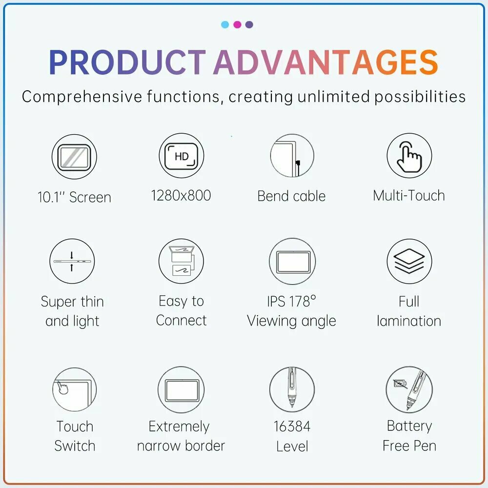 Купить Портативный графический планшет BOSTO BT-101A 10.1 дюйма с IPS экраном, 16384 уровня давления, совместим с Windows, для рисования и дизайна с доставкой по всей России.