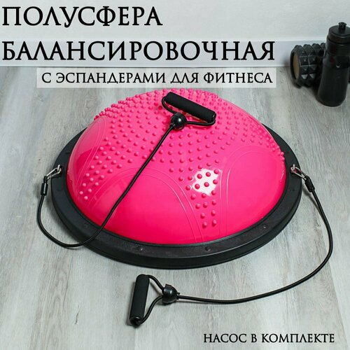 BOSU полусфера балансировочная для фитнеса надувная с насосом. Массажная. Розовый 58 см Bosu – балансировочная полусфера для фитнеса - отличный тренажер баланса для всей семьи. Его универсальность позволяет стать желанным и полезным подарком для подруги, сестры или мамы. Полусфера развивает глубокие мышцы-стабилизаторы, косые и поперечные мышцы живота. Занятия на тренажере укрепляют все тело, так как человек постоянно находятся в напряжении. Такие тренировки улучшают координацию, развивают баланс и равновесие, также повышают тонус внешних и внутренних мышц. Упражнения с босу не перегружают суставы и позвоночник. Мягкая полусфера снимает удары и компрессию суставов при выполнении любого упражнения. Необходимо учитывать, что чем сильнее она накачана, тем более упругой становится. Следовательно, упражнения выполнять намного труднее. При удержании баланса на таком спортивном инвентаре мышцы кора прорабатываются лучше, что обеспечит нагрузку на различные группы мышц, которые на обычных тренажерах не задействованы. В результате укрепляется спина, вырисовывается пресс, формируется правильная осанка. При использовании полусферы вероятность получения травмы практически равна нулю, так как она имеет устойчивую основу. Это делает его намного безопаснее фитбола и других фитнес-инструментов. Bosu – отличный способ усложнить привычные упражнения, увеличив нагрузку и оживить тренировки. Планки, отжимания, выпады пр. выполнять на полусфере намного сложнее. Поэтому можно сжечь больше калорий, что важно при необходимости уменьшения жировой массы.
