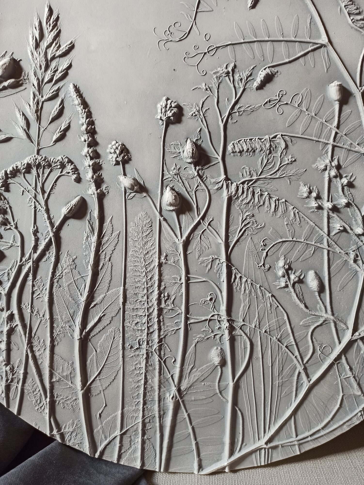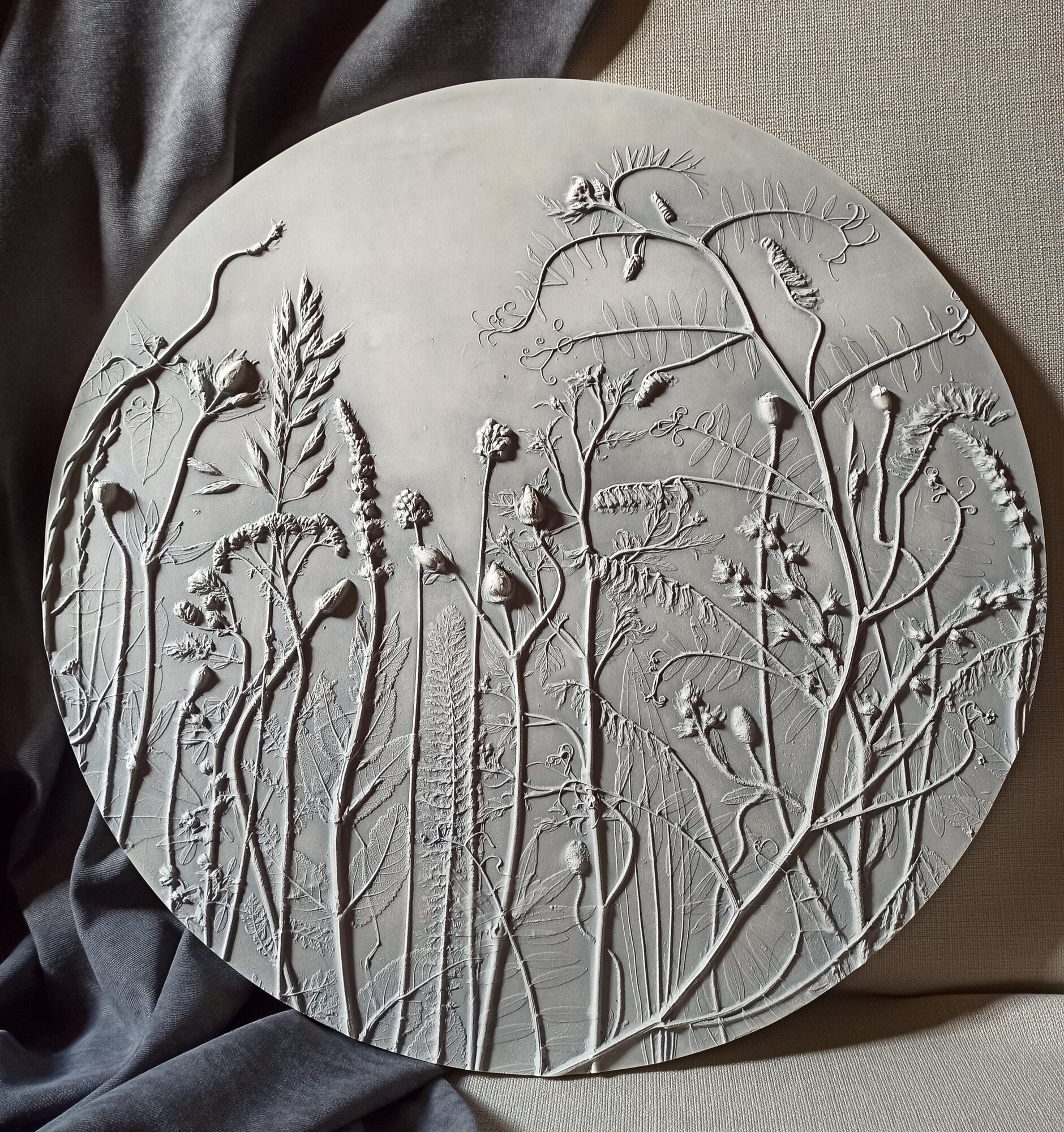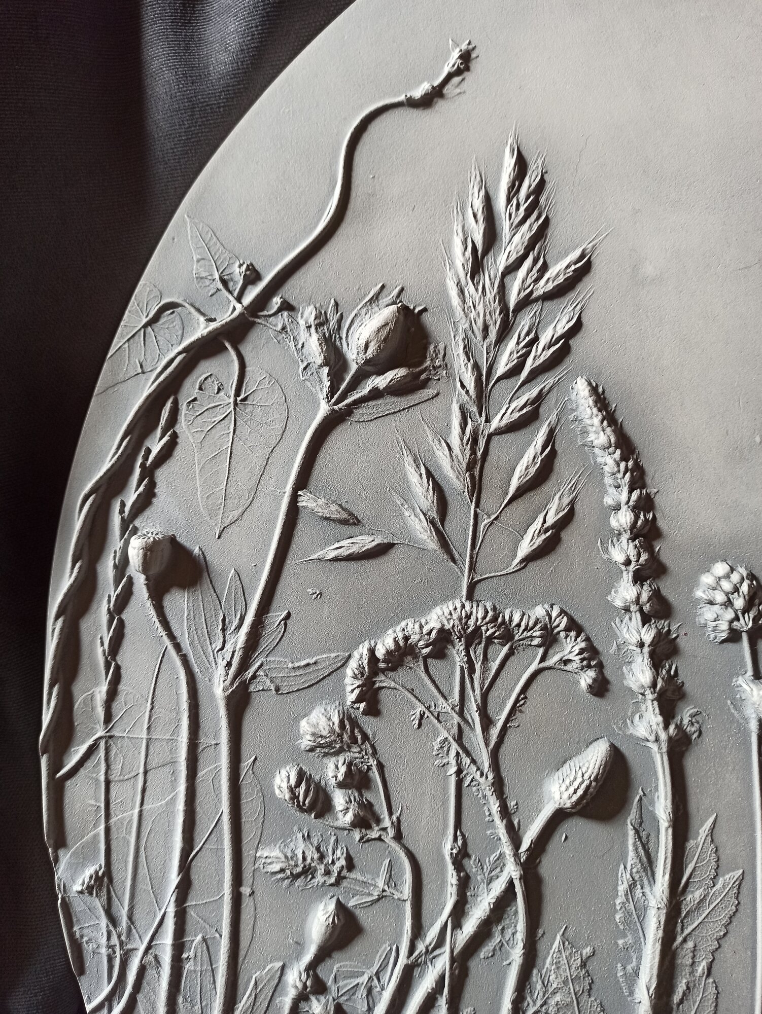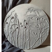 Купить Панно на стену. Ботанический барельеф диаметром 60 см. Цвет серый. Гипсовый декор для интерьера . Ручная работа с доставкой по всей России.